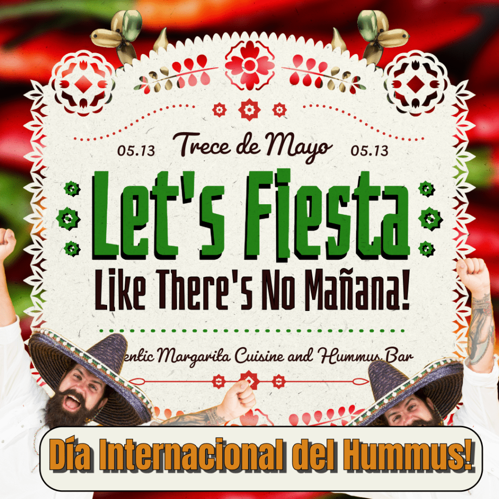 Trece de Mayo! Posted byfredgehrigMay 13, 2024May 13, 2024Posted inBad Maker, Special Day Trece de Mayo, Día Internacional del Hummus! ! Share this: Share on X (Opens in new window) X Share on Facebook (Opens in new window) Facebook Like Loading... Related